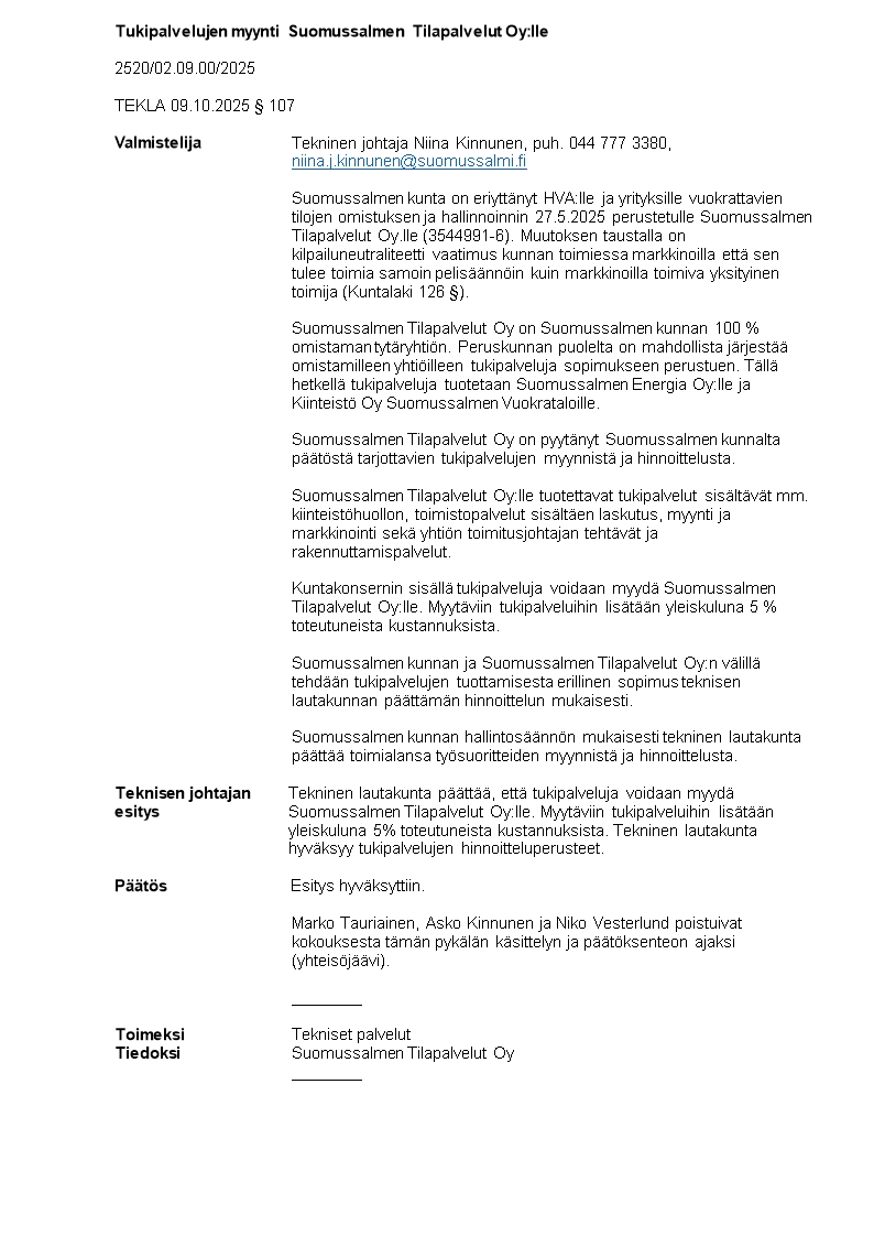 Pöytäkirja 09.10.2025/Pykälä 107