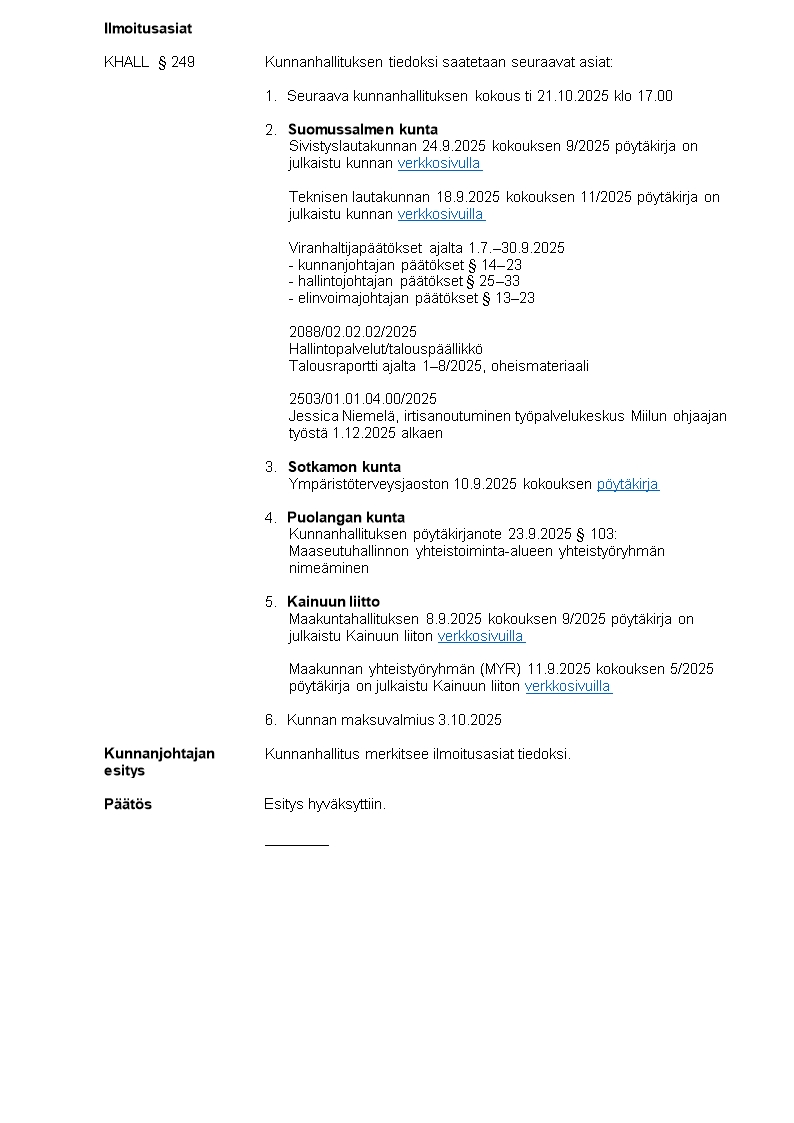 Kokousasiat:https://suomussalmi10.oncloudos.com:443/cgi/DREQUEST.PHP?page=rss/meetingitems&show=30
