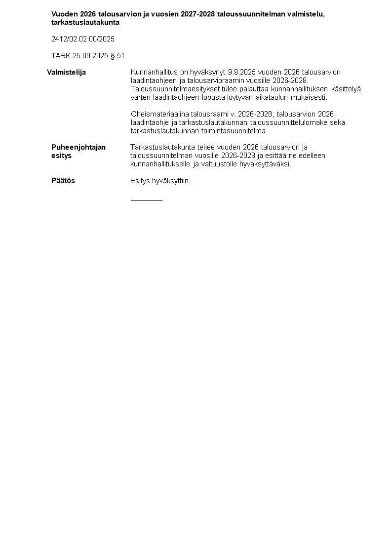 Pöytäkirja 25.09.2025/Pykälä 51