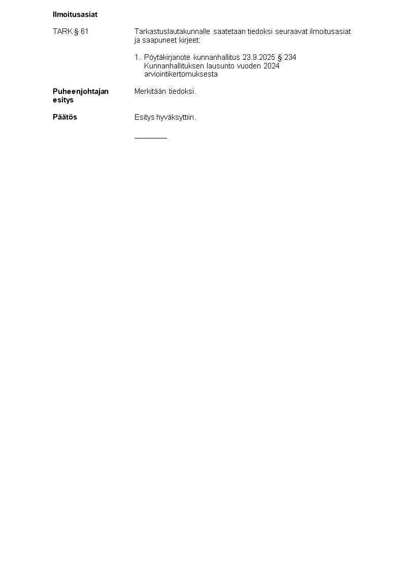 Pöytäkirja 22.10.2025/Pykälä 61