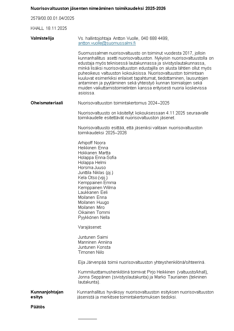 Edellinen asia | Seuraava asia Kokousasia PDF-muodossa
