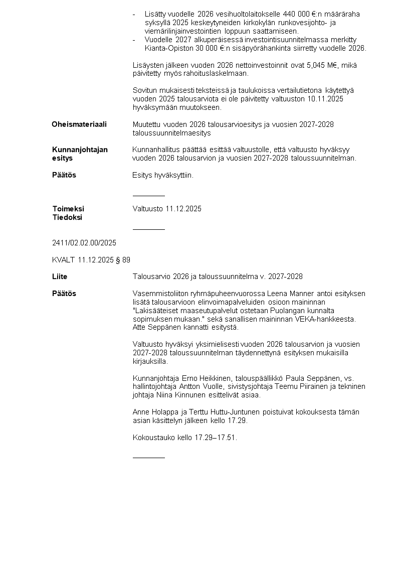 Pöytäkirja 11.12.2025/Pykälä 89