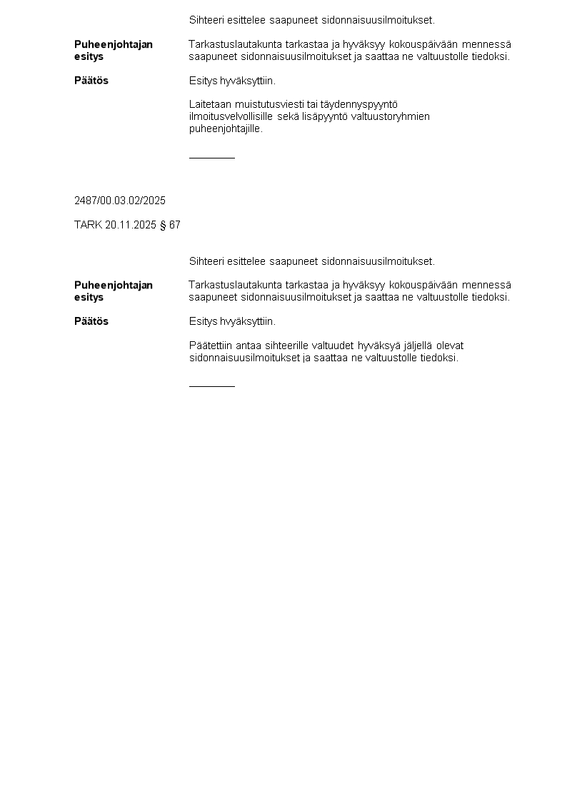 Pöytäkirja 20.11.2025/Pykälä 67