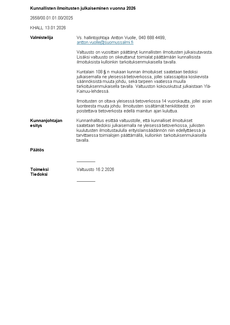 Dynasty tietopalvelu Haku RSS Suomussalmen kunta