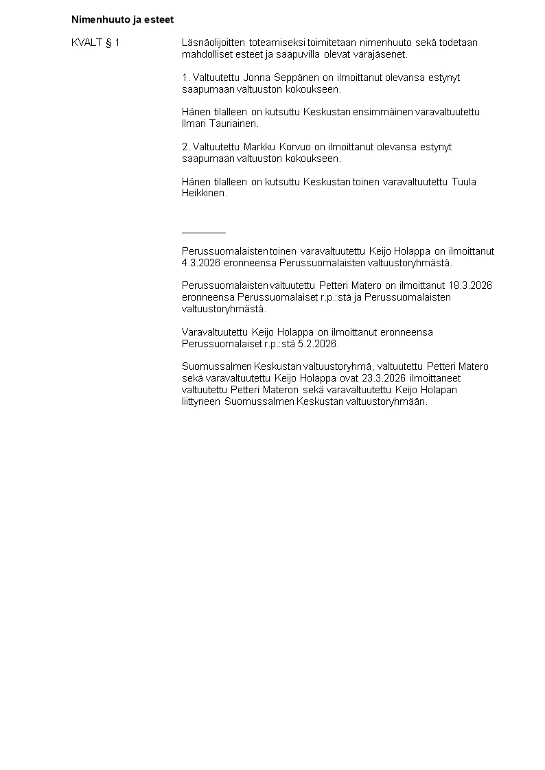 Pöytäkirja 23.03.2026/Pykälä 1