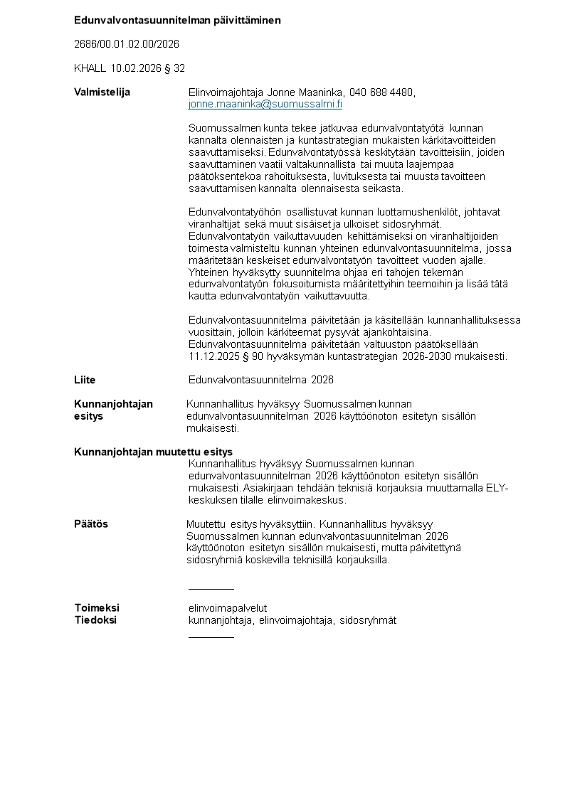 Pöytäkirja 10.02.2026/Pykälä 32