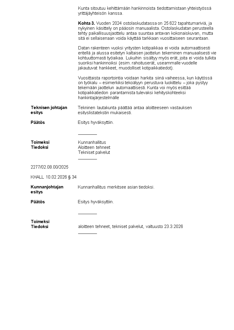 Pöytäkirja 10.02.2026/Pykälä 34