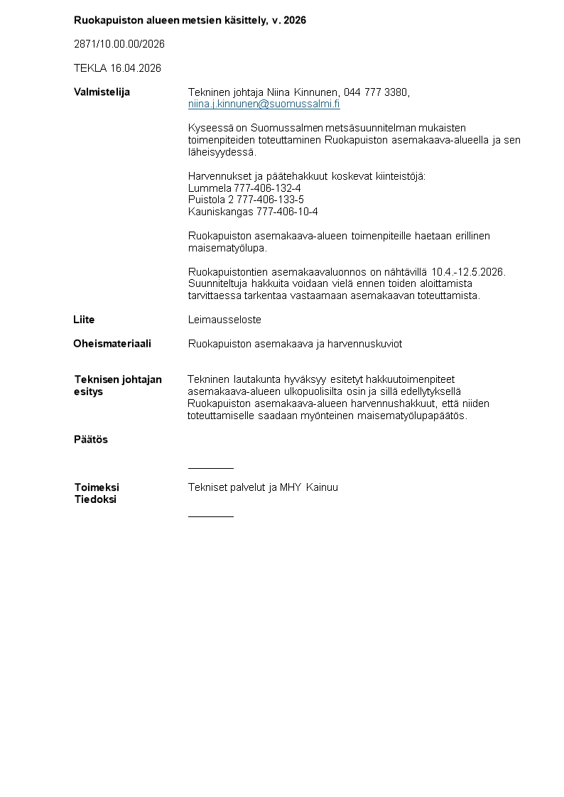 Liite1 Lummela, Puistola 2 ja Kauniskangas leimausseloste