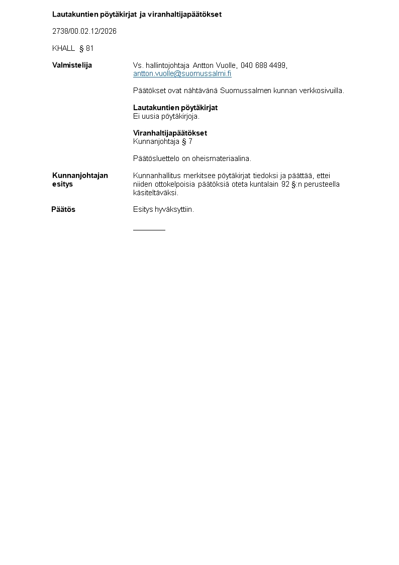 Pöytäkirja 31.03.2026/Pykälä 81