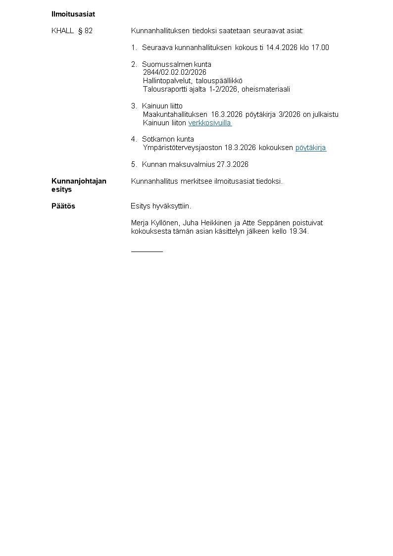Pöytäkirja 31.03.2026/Pykälä 82