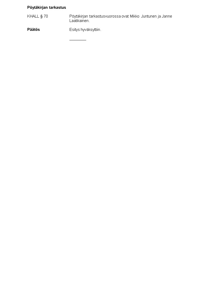 Pöytäkirja 31.03.2026/Pykälä 70