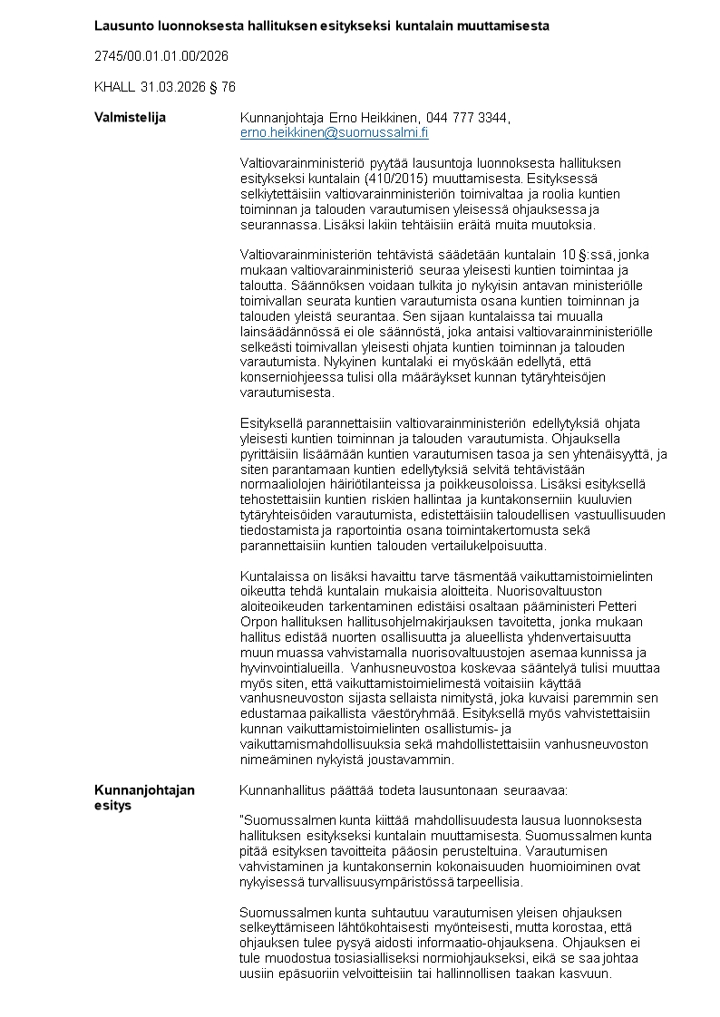 Pöytäkirja 31.03.2026/Pykälä 76