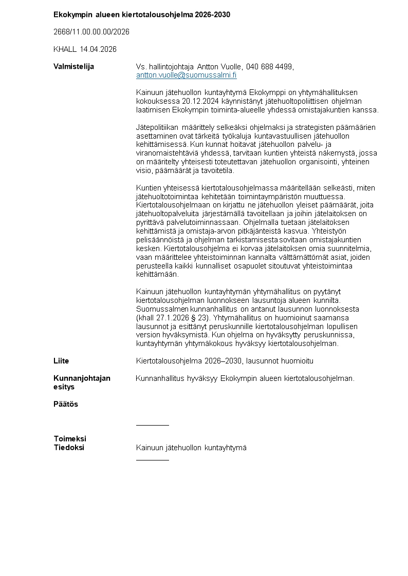 Liite 3 Kiertotalousohjelma 2026-2030, lausunnot huomioitu